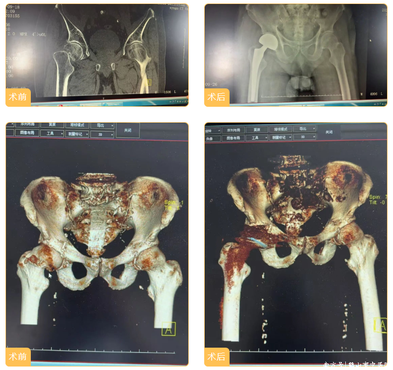 完善术前准备后,由任国雄主任团队为患者实行“右侧东说念主工股骨头置换术”,手术在细密的麻醉景色下弃取微创切口完成,进程获胜,历时50分钟,术中出血约100ml。术后患者祸患显赫缓解,精神景色冉冉改善,术后第二天,刘爷爷即可在助行器援救下下床活动,并在康复团队指令下进行早期功能教学。出院前复查CT显露:东说念主工股骨头假体位置细密,无脱位时局。此时刘爷爷已能熟练使用助行器进行行走活动,达到预期康复野心。