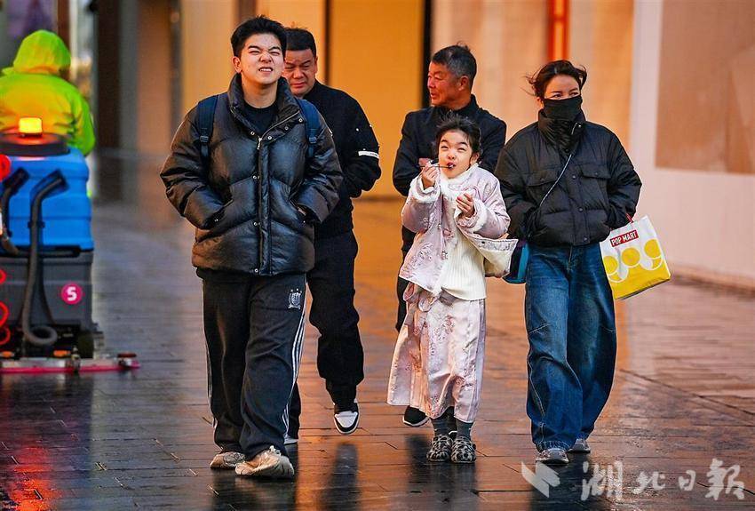 11月17日,武汉最低气温降至1℃并陪同大风和小雨天气。当日下昼,记者在武昌汉街看到,因断崖式降温存下雨,街上行东谈主少见,逛街的市民搭客均已穿上寒衣防寒。