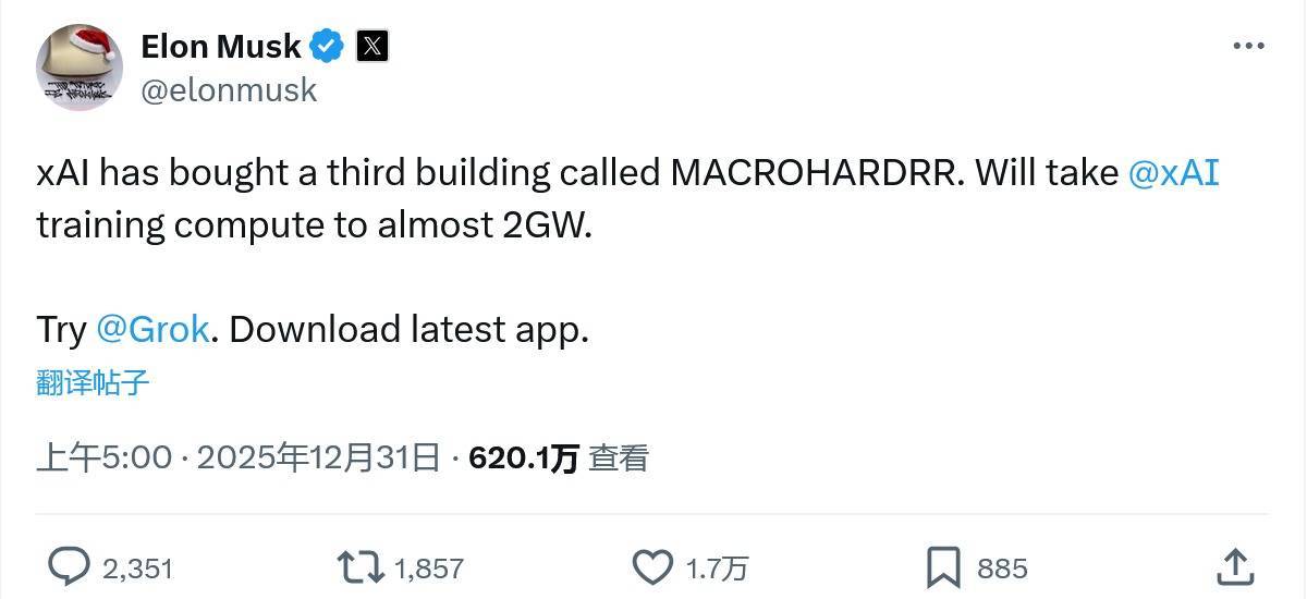 IT之家 12 月 31 日讯息,埃隆・马斯克当地时代昨日通知旗下东说念主工智能企业 xAI 买下了名为 MACROHARDRR 的第三幢建筑。xAI 将在其中缔造数据中心,其领有的 AI 测验负载算力也将随之扩展至 2GW 级别。